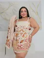 Conjunto kimono floral em tecido duna: vestido curto com recorte moderno e kimono aberto que completa o look com elegância. Tecido leve, caimento suave e estampa em tons terrosos que valorizam a silhueta sem esforço. Perfeito para o verão, passeios, festas informais ou férias. Use com sandálias de tiras para um visual chic ou com acessórios dourados para um toque noite.