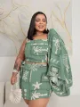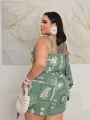 Conjunto kimono verde estampado, composto por top cropped, short e kimono ampliado. Tecido leve de viscocolinho oferece caimento suave e toque macio, perfeito para o verão. A kimono de mangas largas valoriza silhueta e facilita movimentos, enquanto a estampa tropical com palmeiras e conchas dá um visual moderno e elegante. Ideal para passeios, praia ou eventos descontraídos, combina com acessórios neutros e eleva qualquer look.