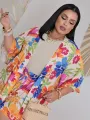 O Viscolinho oferece um caimento leve e soltinho. Como o Kimono é uma peça aberta (estilo oversized), ele se adapta facilmente a diferentes medidas de busto.