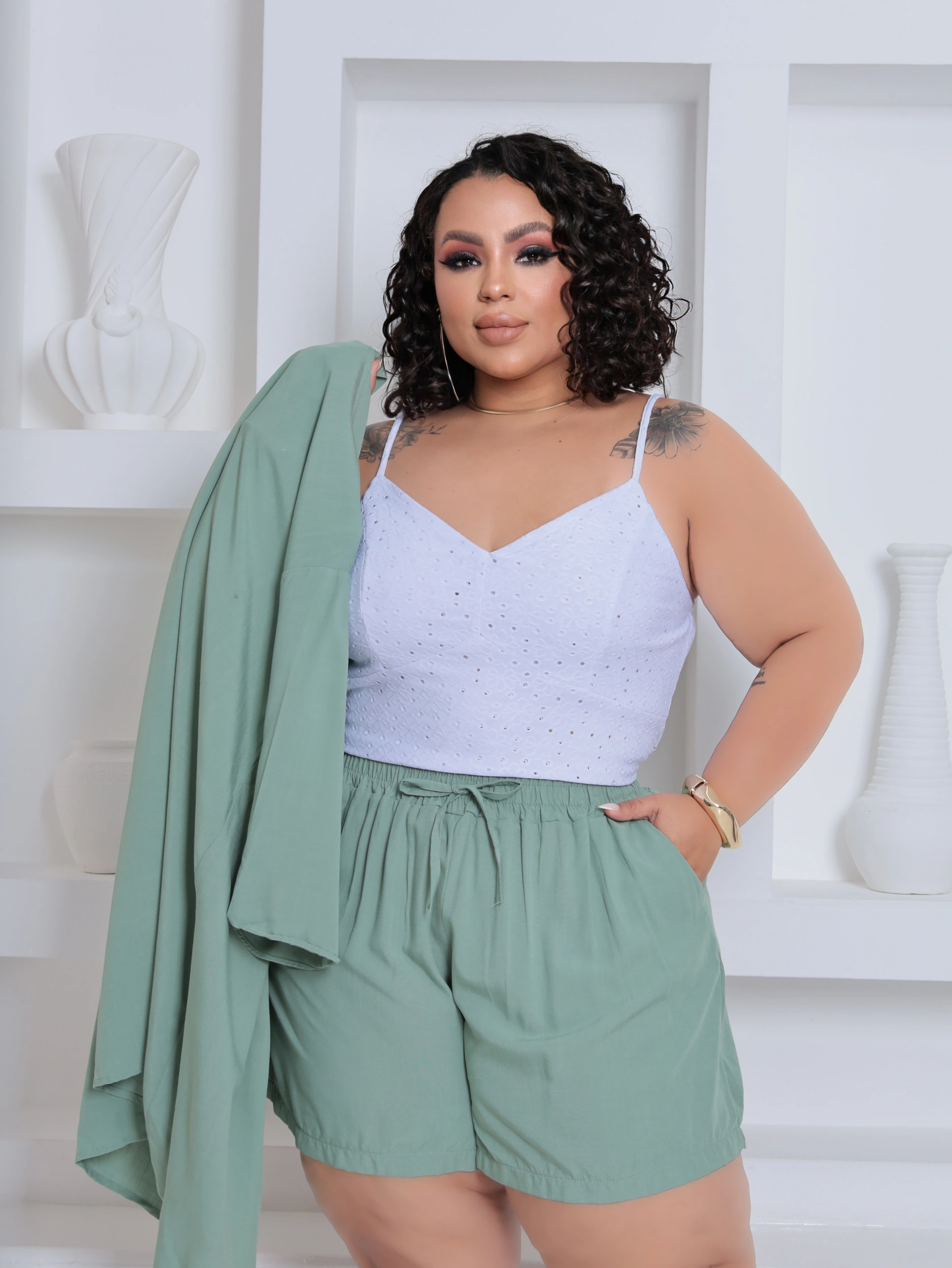 Cintura Shorts: 102cm (relaxado) a 128cm (esticado).