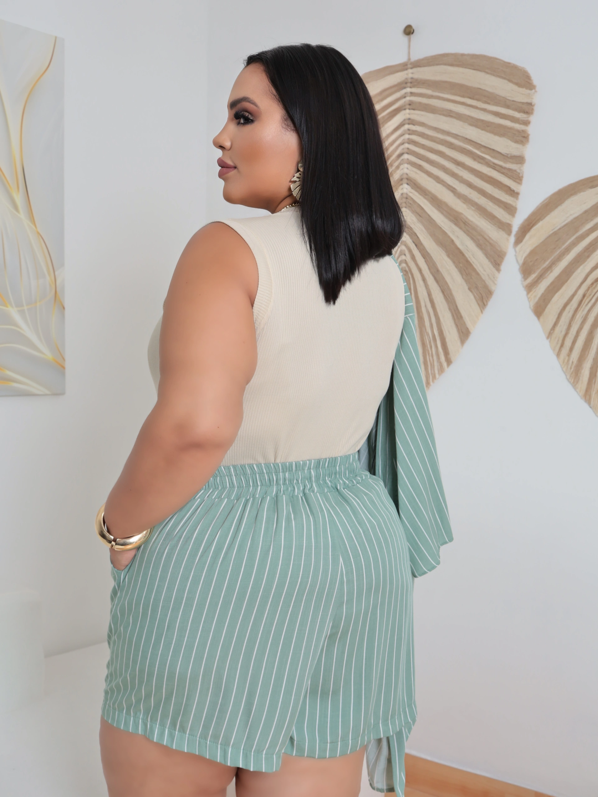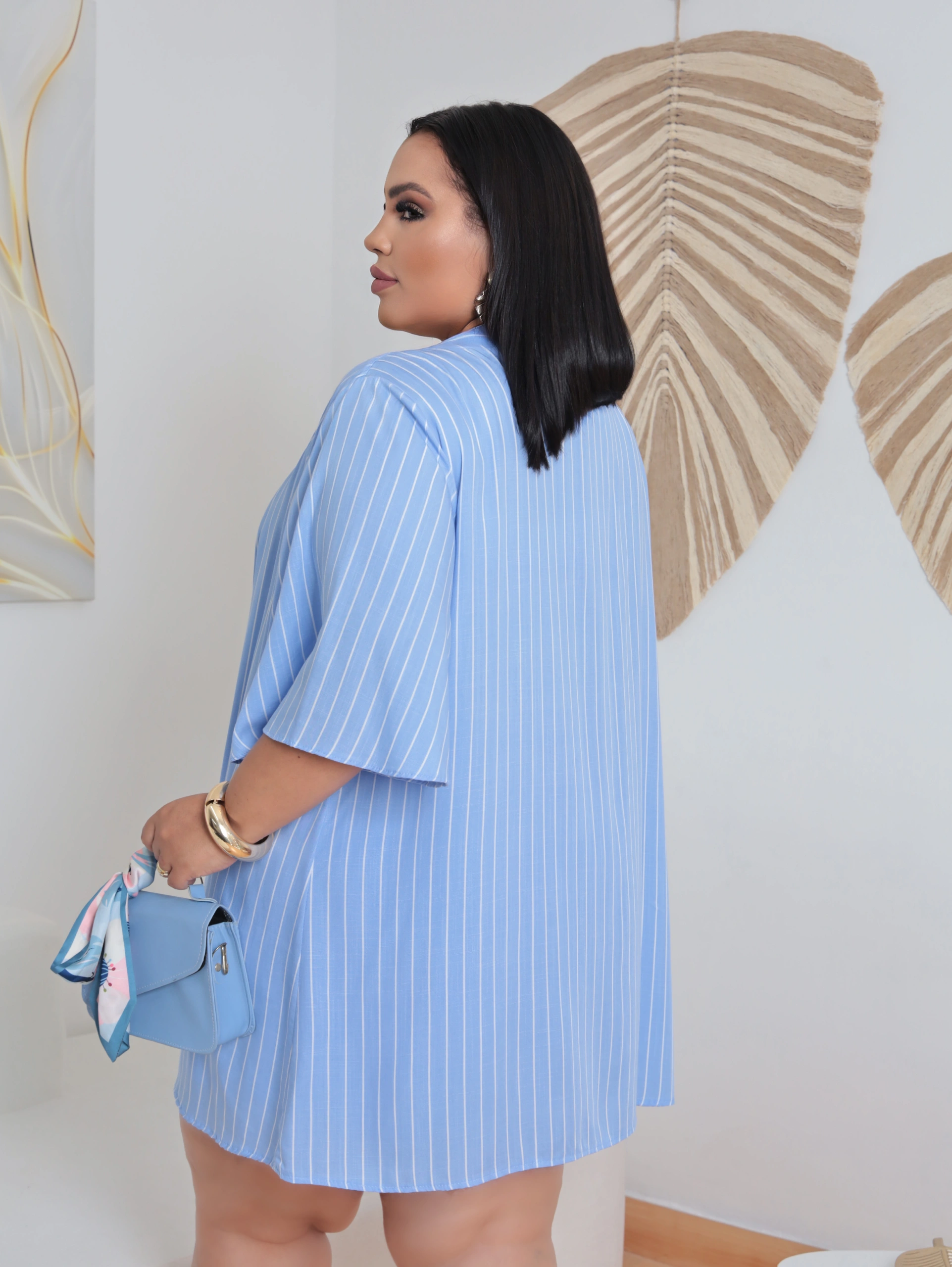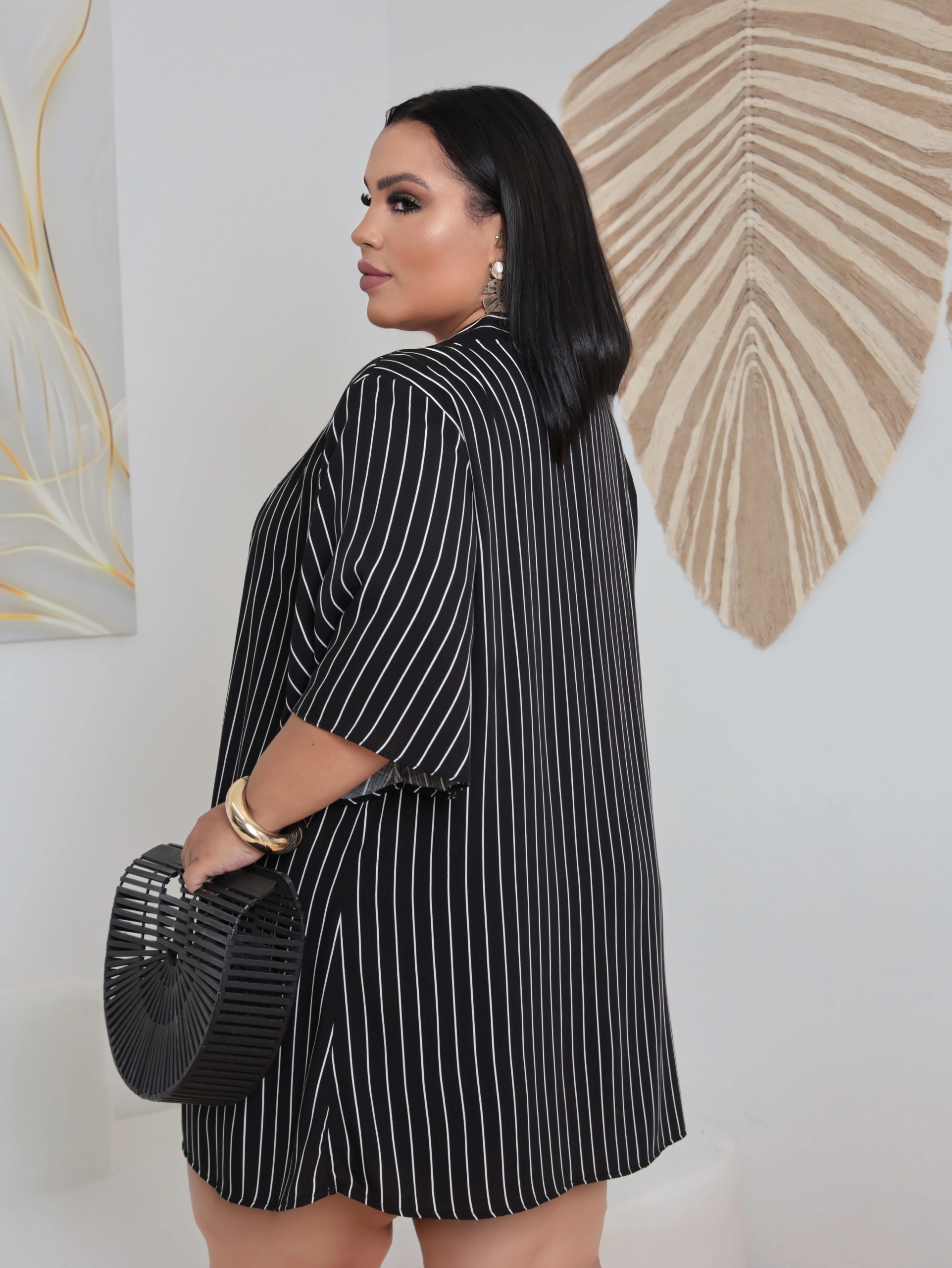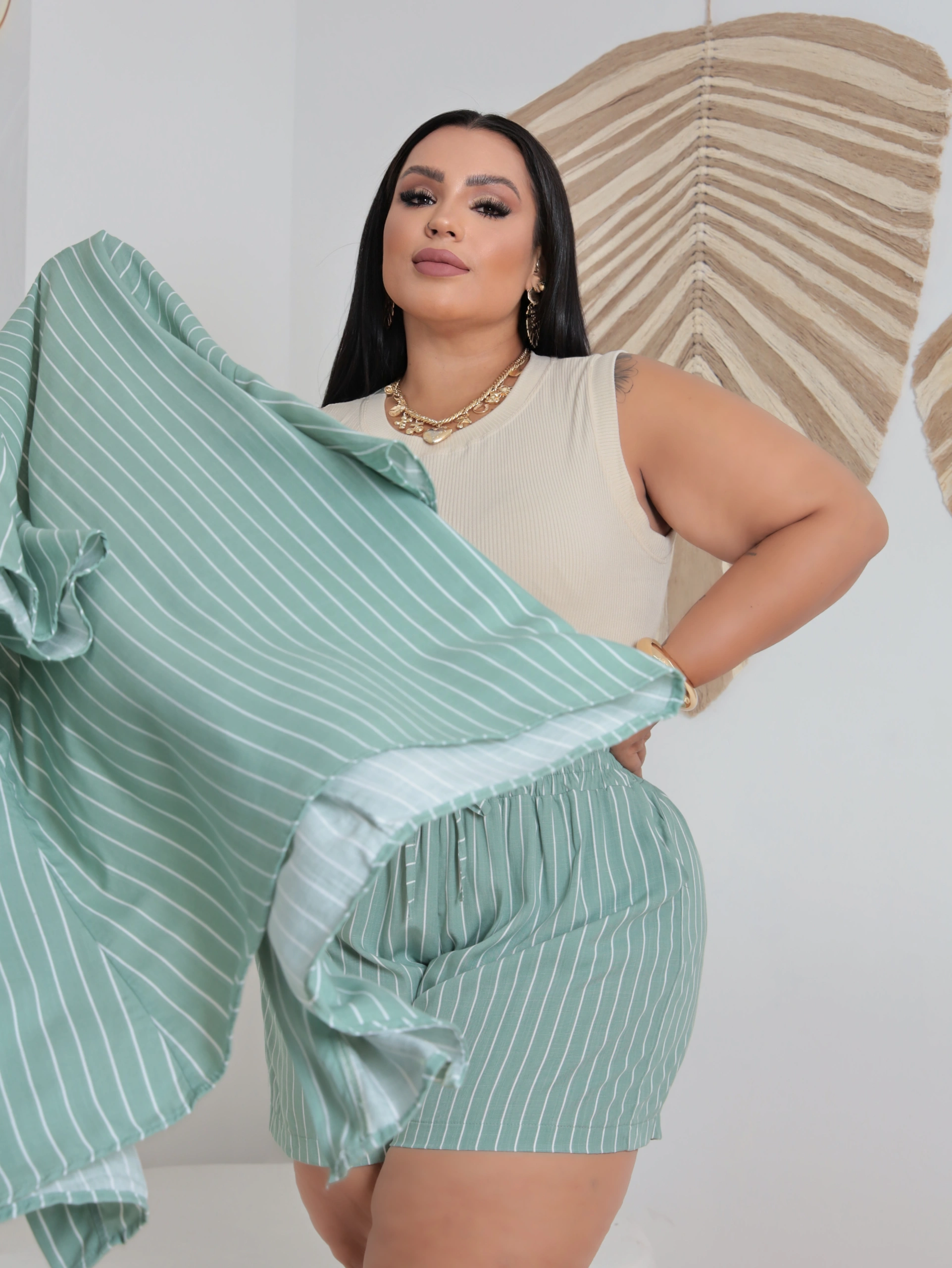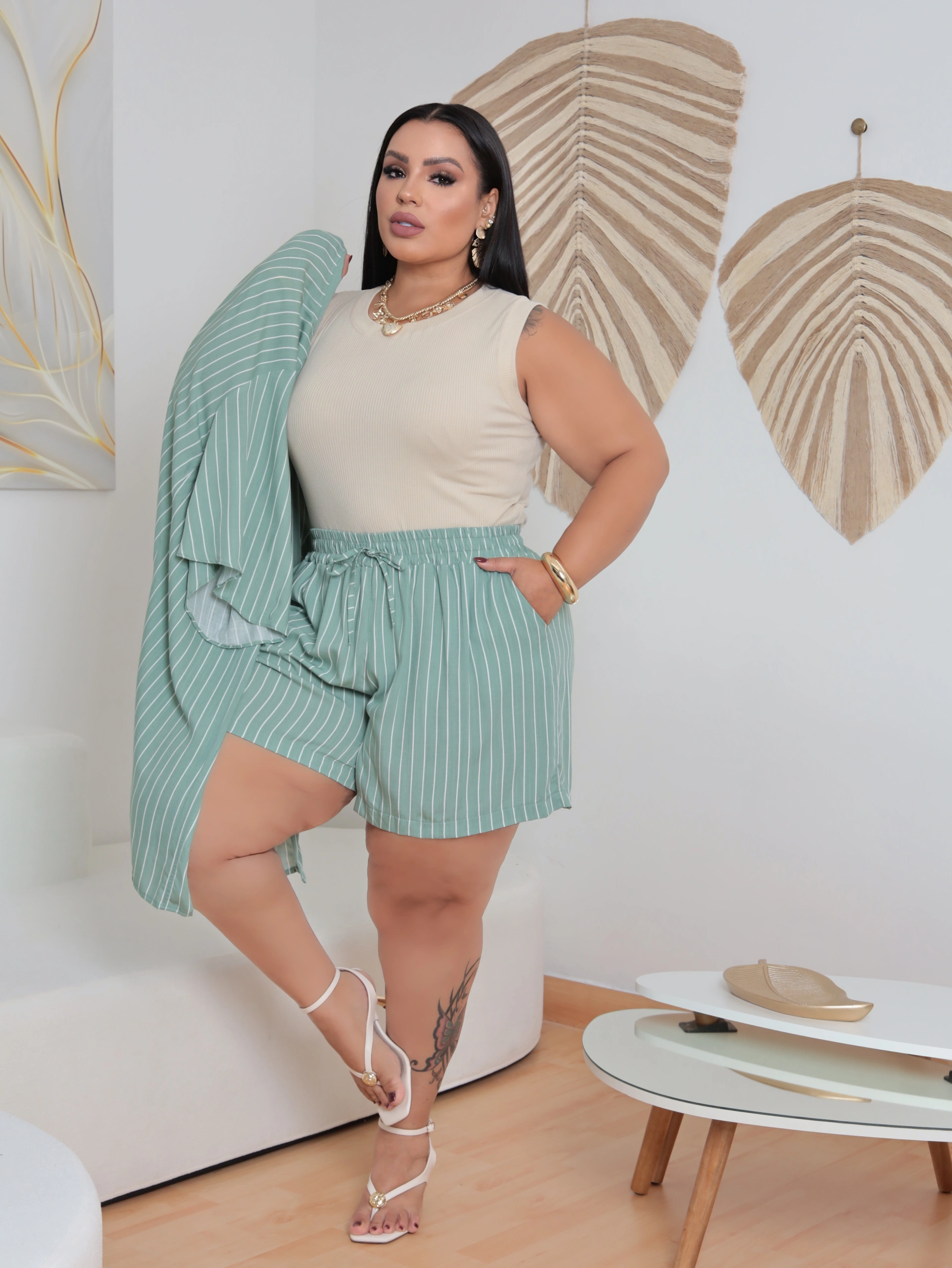 Conjunto kimono plus listrado,em tecido viscolinho.