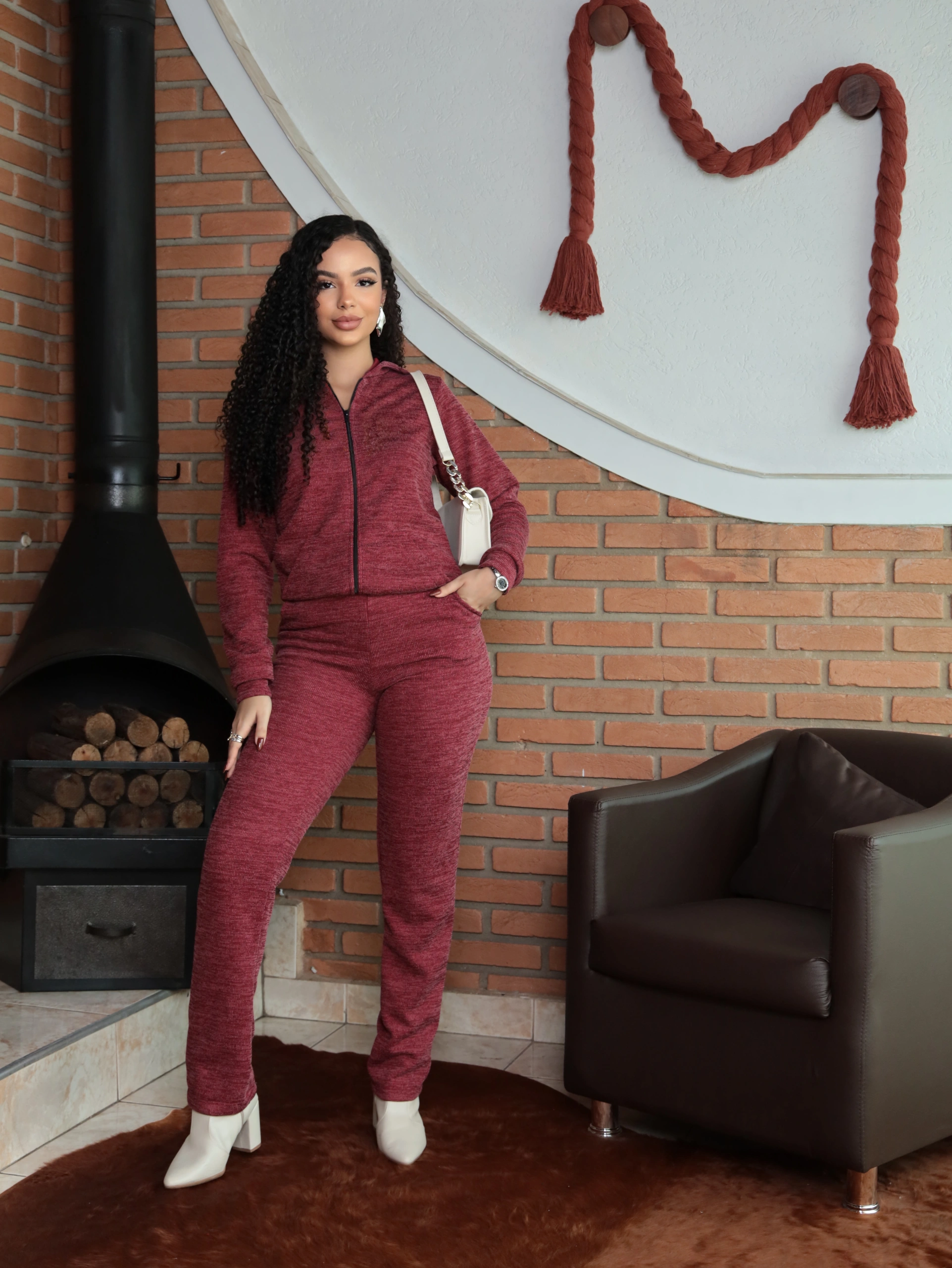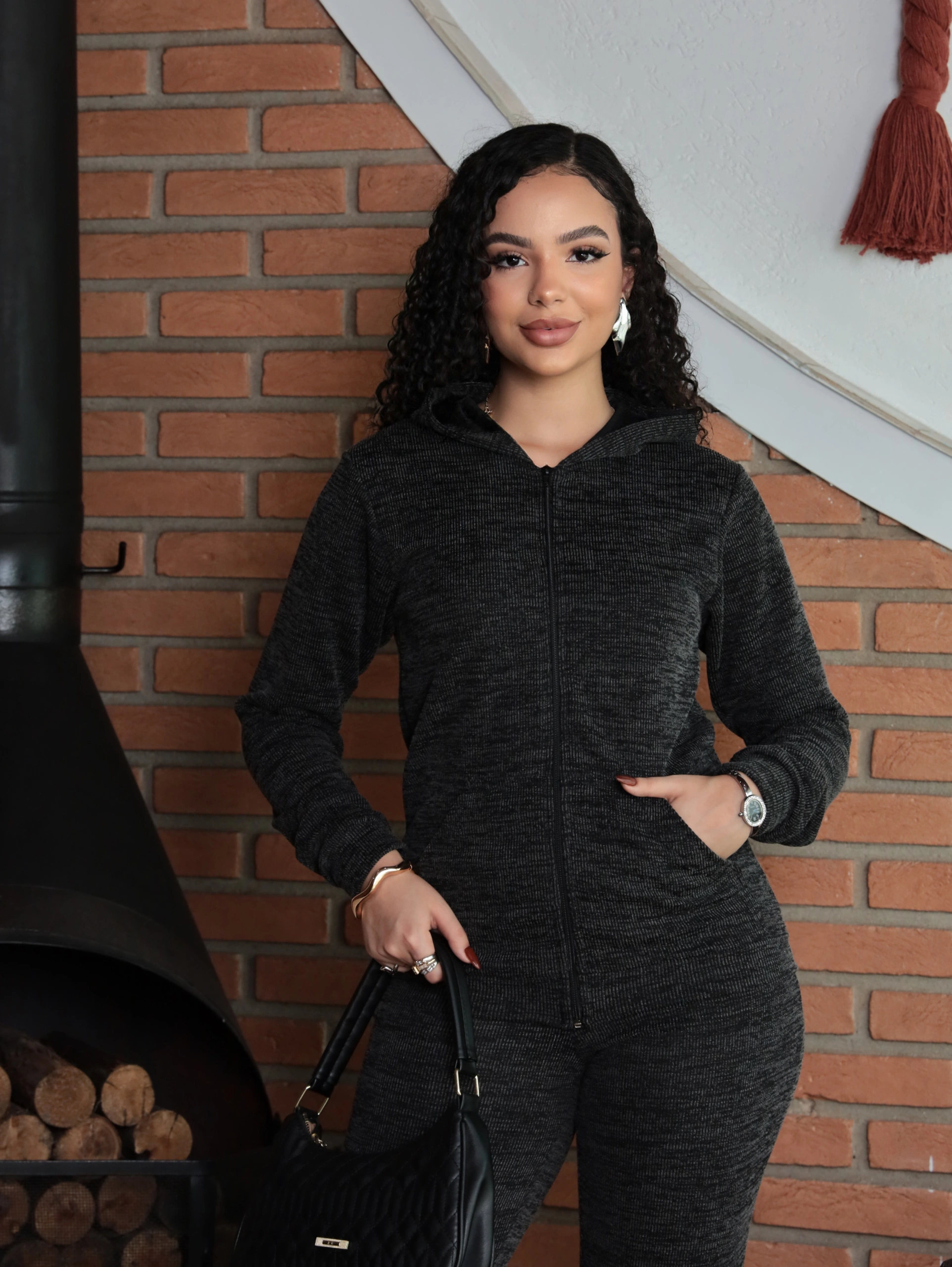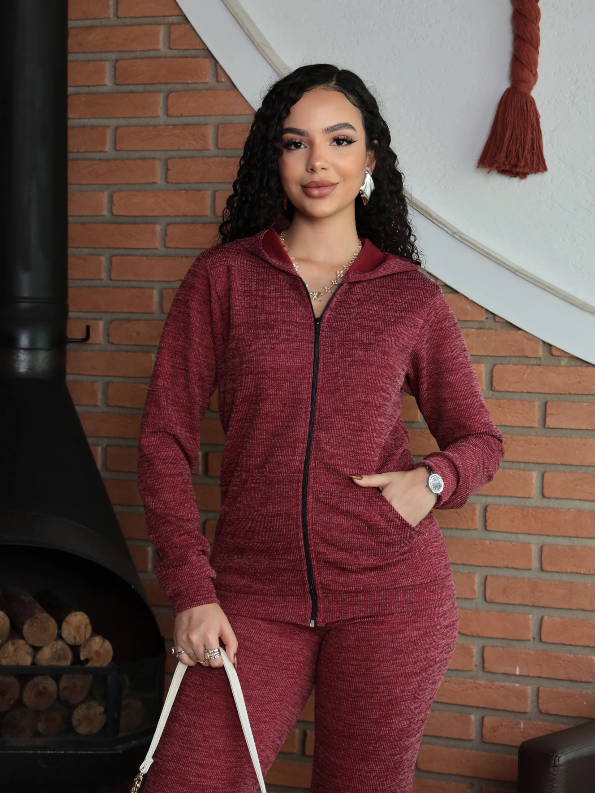 Destaques: Jaqueta com zíper e capuz + Calça com caimento impecável.