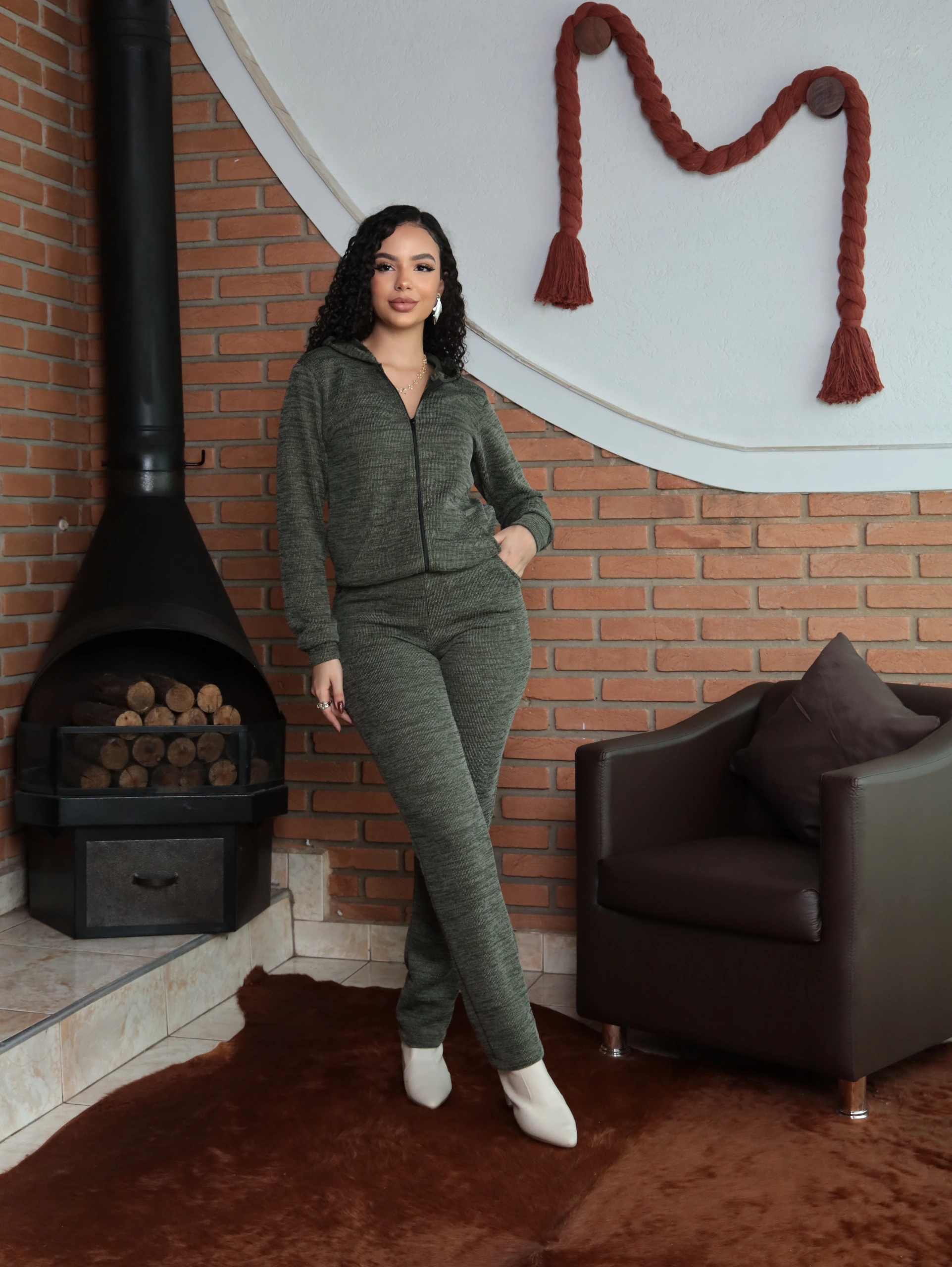 Conjunto malha rib slim com capuz